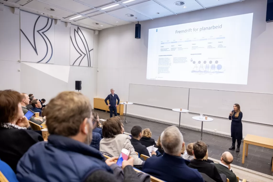 Arrangementet ble åpnet av Linstow og Oslobygg KF som gav oss et innblikk i deres felles arbeid med å utvikle gamle Veterinærhøyskoletomten. Deretter innledende ord fra OMAs utviklingsdirektør Ida Hjeltnes sammen med Hans Martin Aambø og Anne Therese Børrud Anvik fra Plan- og bygningsetaten om tillitssporet vi i fellesskap har oppnådd gjennom en dialogbasert tilnærming til et høringsutkast gjennom bred deltakelse og engasjement i de temavise rundebordskonferansene i høst, og erfaringer etaten har gjort seg.
