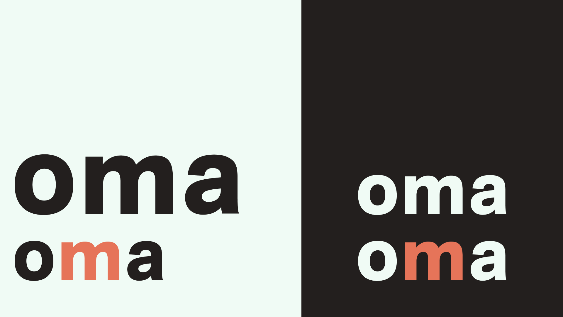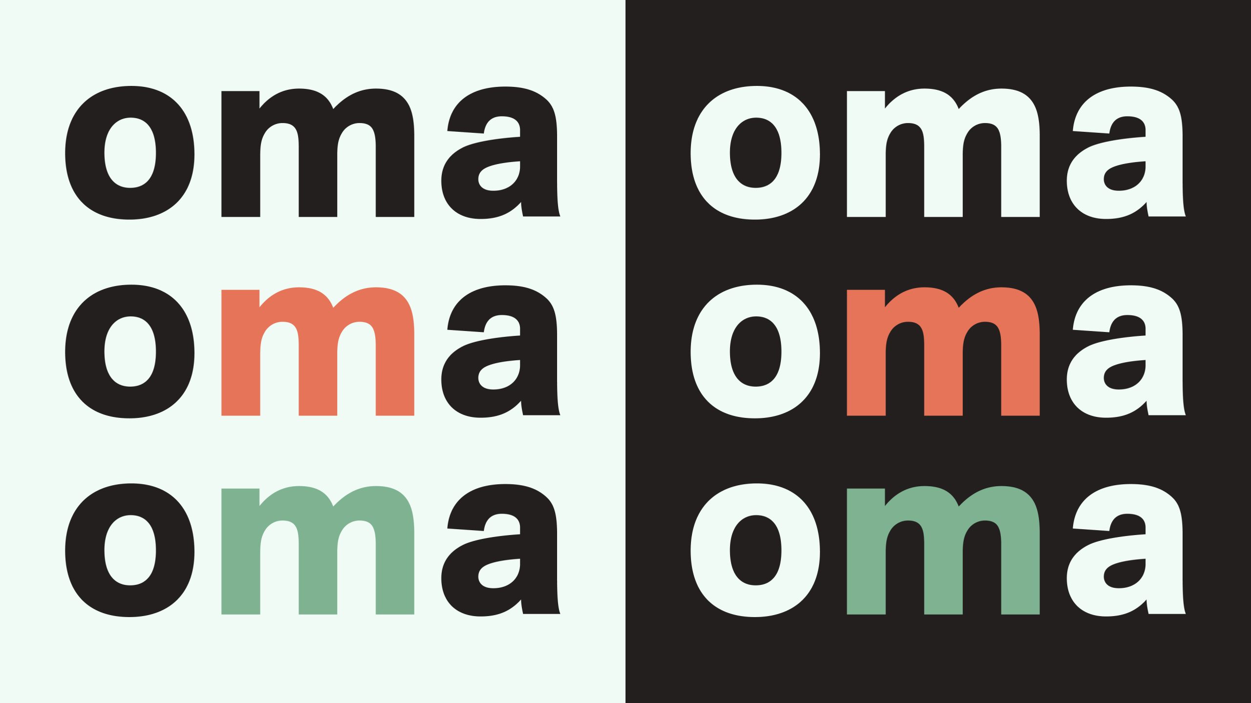 Sentralt i identiteten er logoen. Den finnes i to varianter, en som består av forkortelsen OMA og en som staver ut hele navntrekket. Forkortelsen er den primære logoen. I logoen er navnet skrevet med små bokstaver. Logoen er primært i sort, men kan unntaksvis, f eks ved mouseover på nettsiden, brukes i to farger, hvor ordet metropolitan eller bokstaven m farges med oma rød.