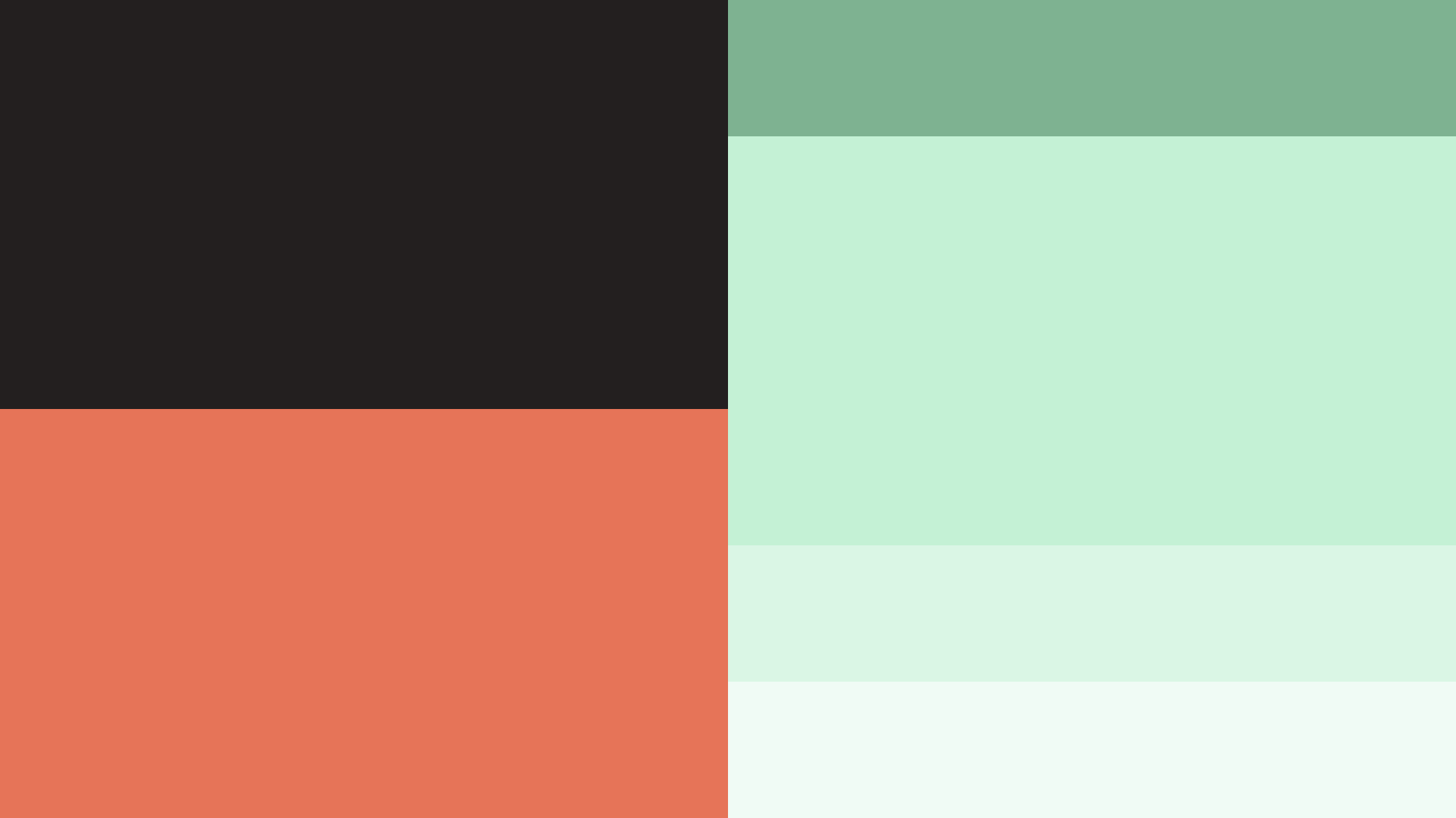 Fargeprogrammet består av to hovedfarger – sort og rød – og en støttefarge – grønn i ulike lyse nyanser.